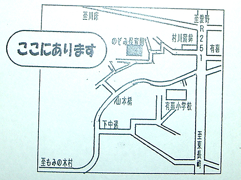引っ越したので地図も変わりました。 長崎県営バスの山本橋バス停から歩いて3分。 国道251線は、長崎から雲仙に向かう橘湾側の道路です。 愛野からだと村川蒲鉾(ヤマショウ)の先を右に曲がってください。 信号の手前を右です。